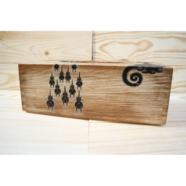 Dřevěné boxy na kapesníky s vysouvacím dnem. Zdobené technikou decoupage, dozdobováno patinou. Vše řádně zalakováno vodou ředitelným lakem, lze otírat vlhkým hadrem. Rozměry: 26 x 14 x 8 cm.